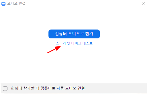 스피커 및 마이크 테스트를 하면 테스트를 하는 것이고 "컴퓨터 오디오로 참가" 버튼을 누르면 회의방에 입장하는 것이다.