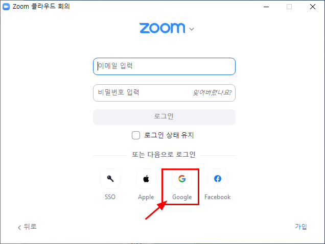 3. 이메일, 비밀번호 입력창이 뜨는데, 간단히 구글 계정이 있으면 구글을 선택하자.