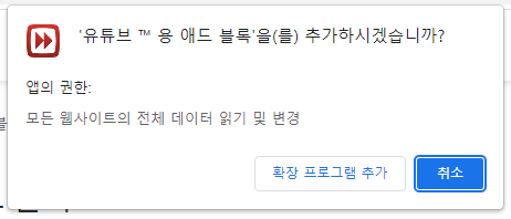 4. 다시 물어보는 창이 뜨는데, 확장 프로그램 추가 를 선택해 준다.
