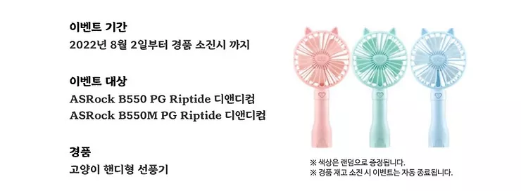 ASROCK (애즈락) B550M PG 립타이드 디앤디컴 메인보드를 구매하면 핸디형 선풍기 증정 이벤트 중이다.