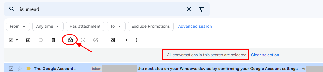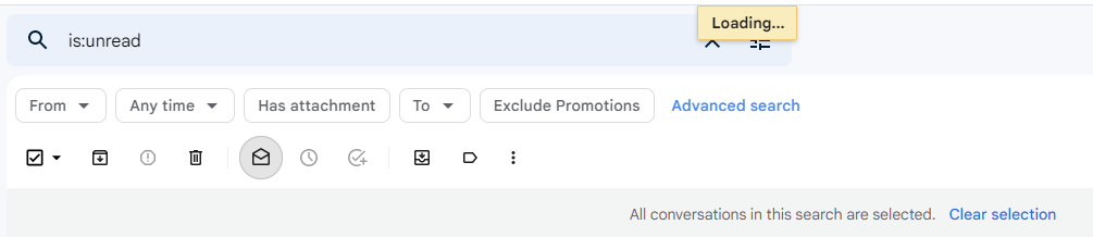 3. 그러면 메세지가 "All conversations in this search are selected."로 나온다.