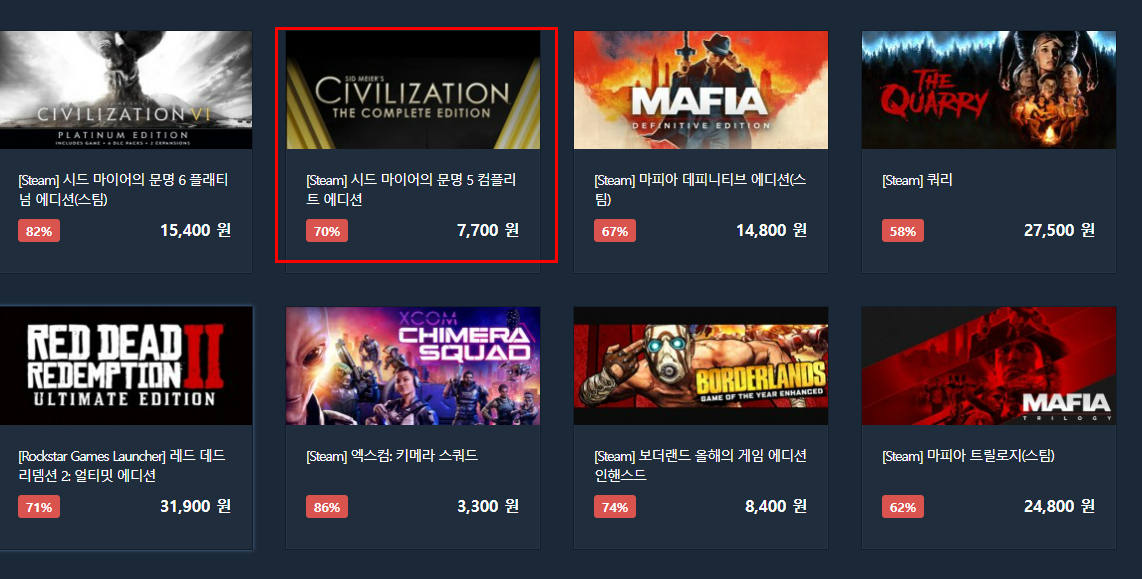 문명5는 7,700원에, 문명6은 15,400원에 스팀용으로 판매 중이다.
