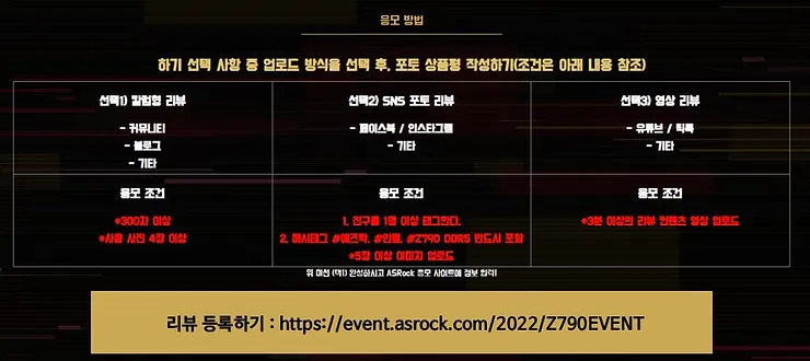 - 애즈락 Z790 DDR5 메인보드 구매 시 응모 가능한 리뷰 이벤트