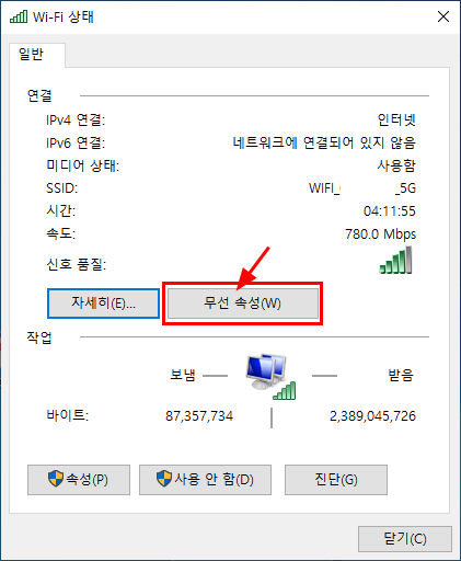 5. 무선 속성을 선택해 준다.