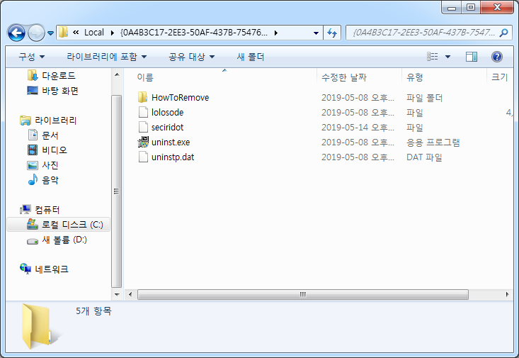 6. 그러면 HowToRemove 폴더와 일부 파일들이 있을 것이다. 해당 폴더 전체를 삭제하자.