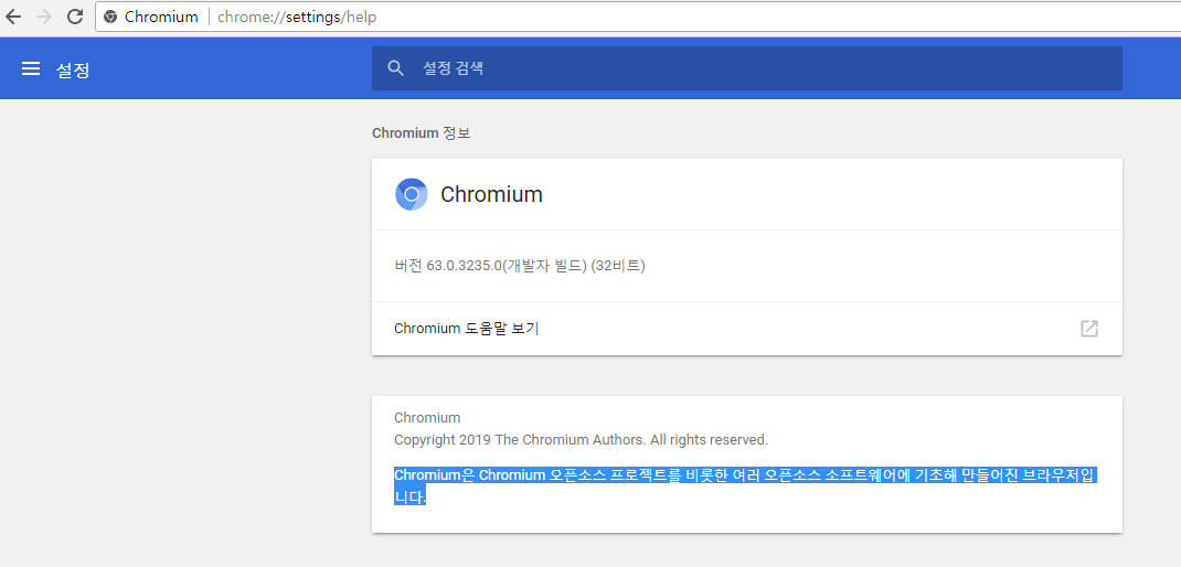 1. 크로미움 웹브라우저 정보를 보니, Chromium은 Chromium 오픈소스 프로젝트를 비롯한 여러 오픈소스 소프트웨어에 기초해 만들어진 브라우저입니다. 이렇게 설명이 되어 있다.