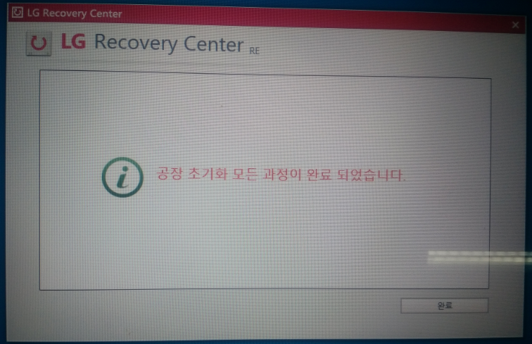 5. 노트북 공장 초기화가 완료되었다고 나온다.