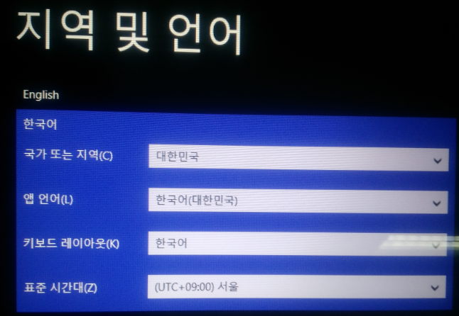 6. 재부팅이 되고 윈도우 설정 화면이 나온다. 나머지는 알아서 선택하면 된다.