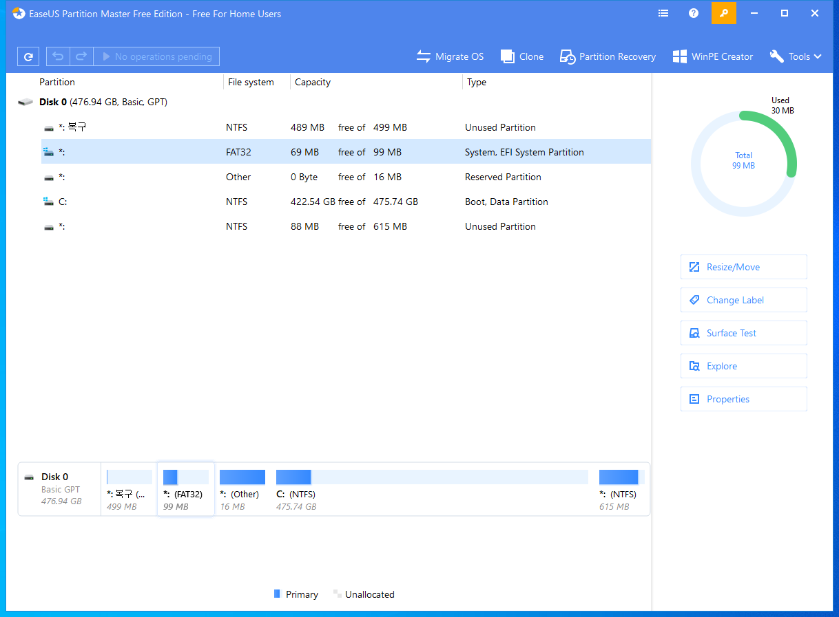 2. 프로그램 : EaseUS Partition Master FREE v.13.5 / 파티션 나누기, 파티션 합치기, 파티션 조정
