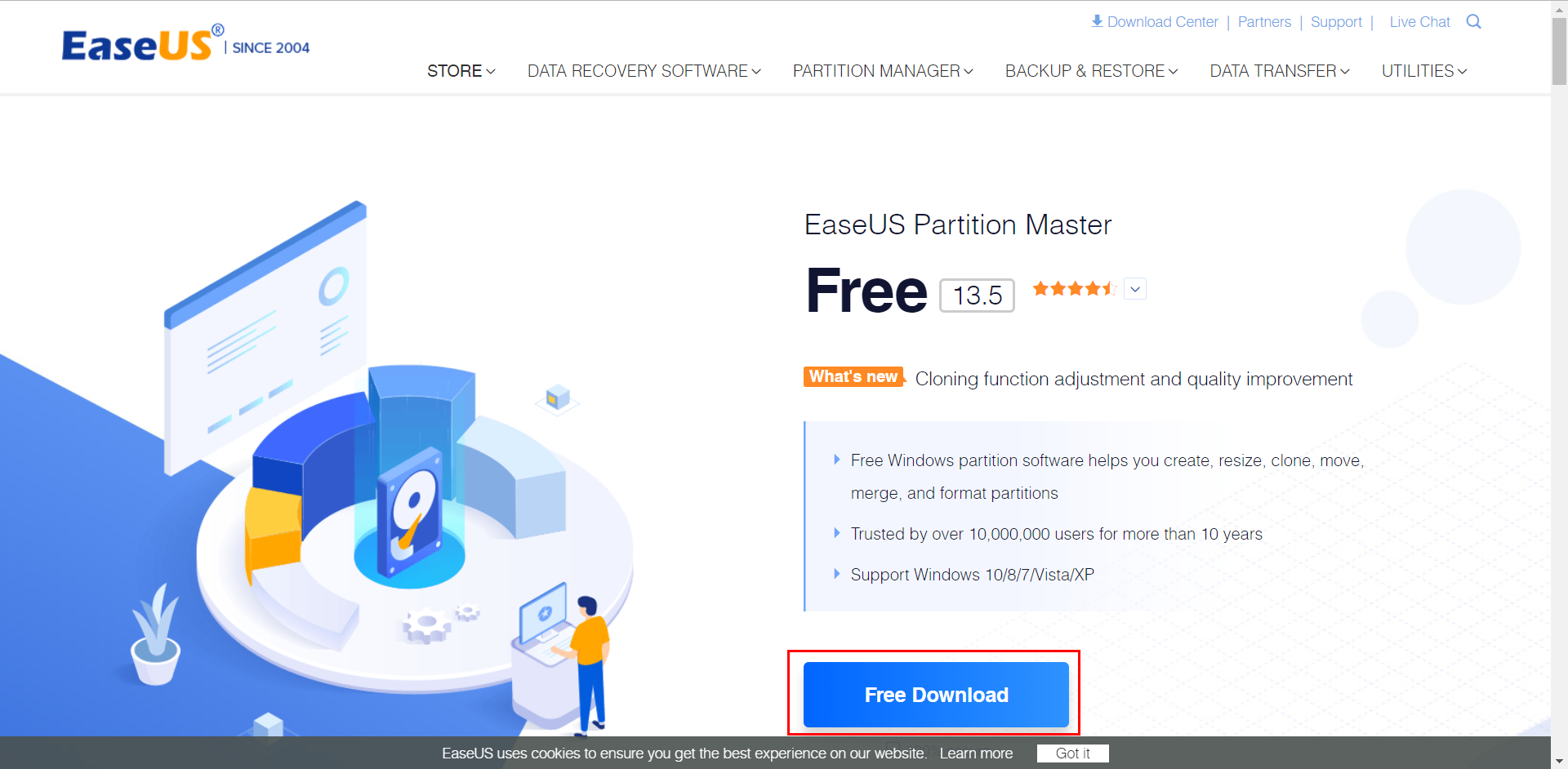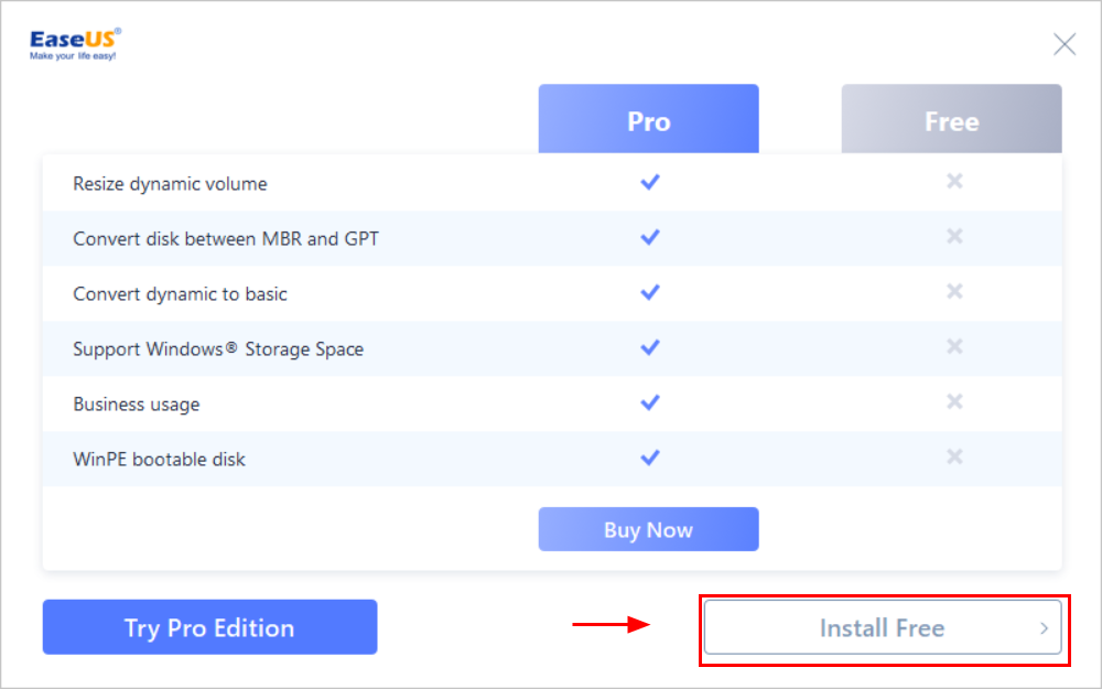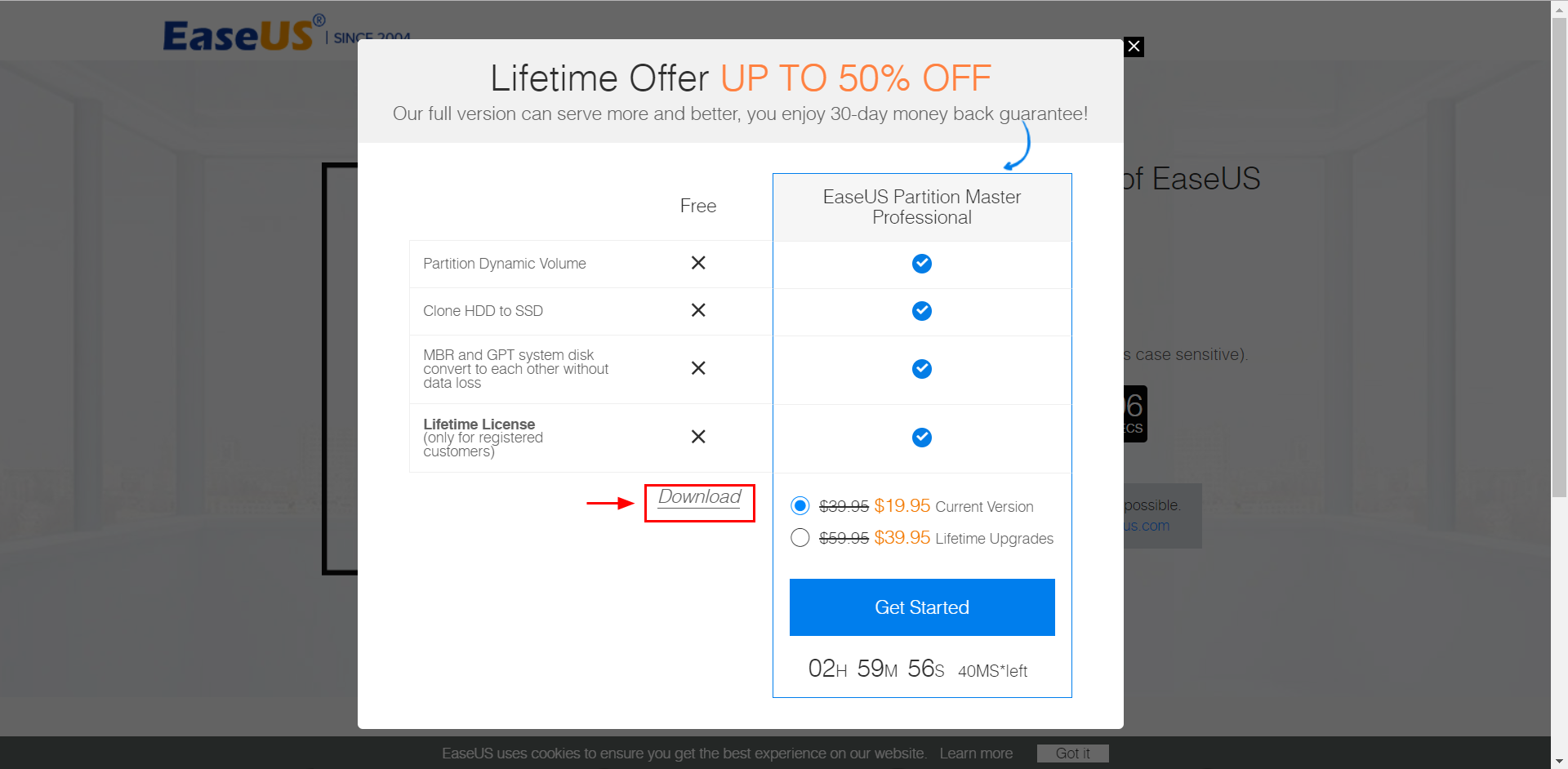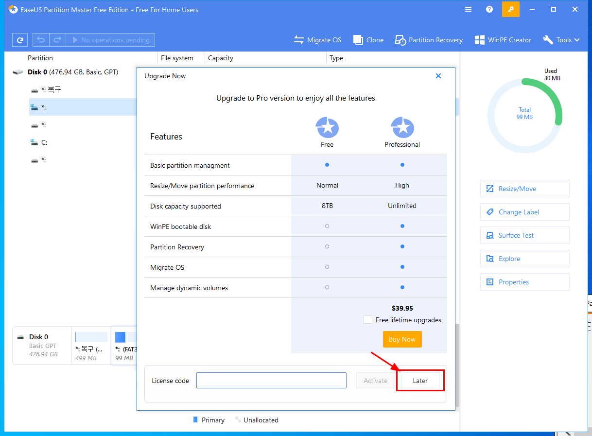 2. EaseUS Partition Master 프로페셔널 버전을 사라고 꼬득이지만, FREE 버전을 다운 클릭하자.