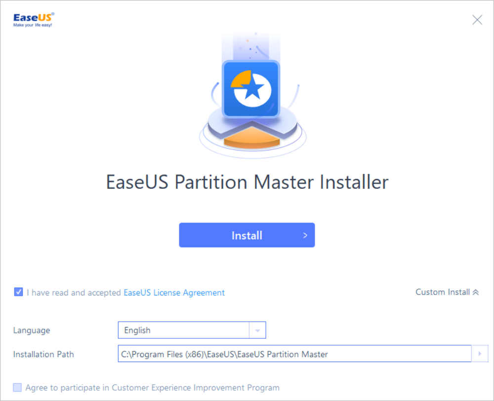 4. 혹시나 오른쪽의 Custom Install 을 클릭하니, 언어와 설치 경로를 확인 가능하다.