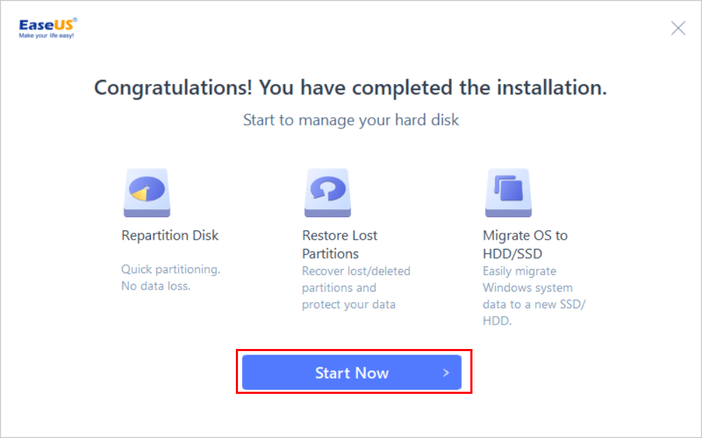 7. 설치 완료를 축한한다고 나온다. [Start Now] 클릭하자.