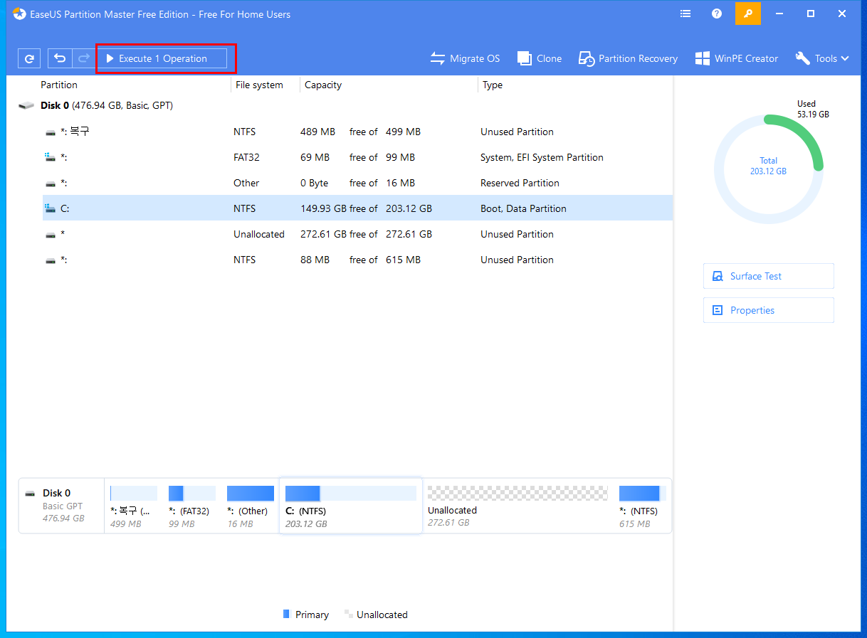 파티션 나누기 합치기의 최강자인 EaseUS Partition Master 이다.