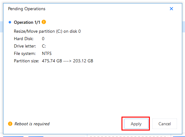 나온 그대로 쉽게 이해 될 것이다. 475GB -> 203GB로 변경하겠다는 것을 확정하는 셈이다.