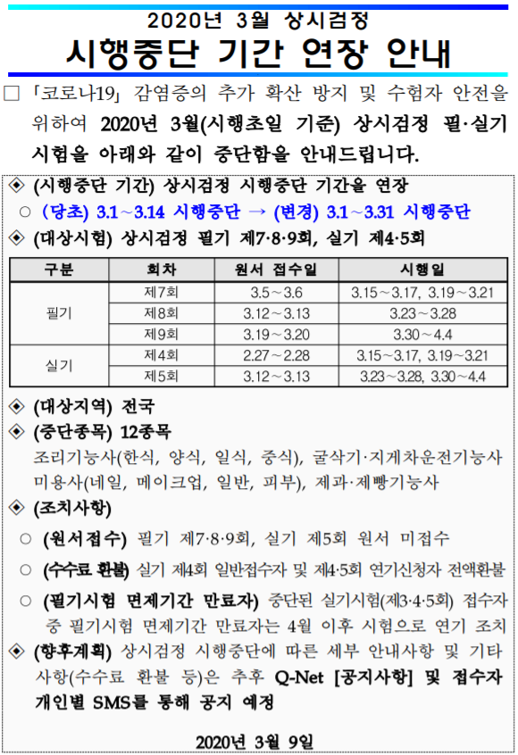 또한 2020년 3월 상시검정 시행중단 기간 연장이 되었다.