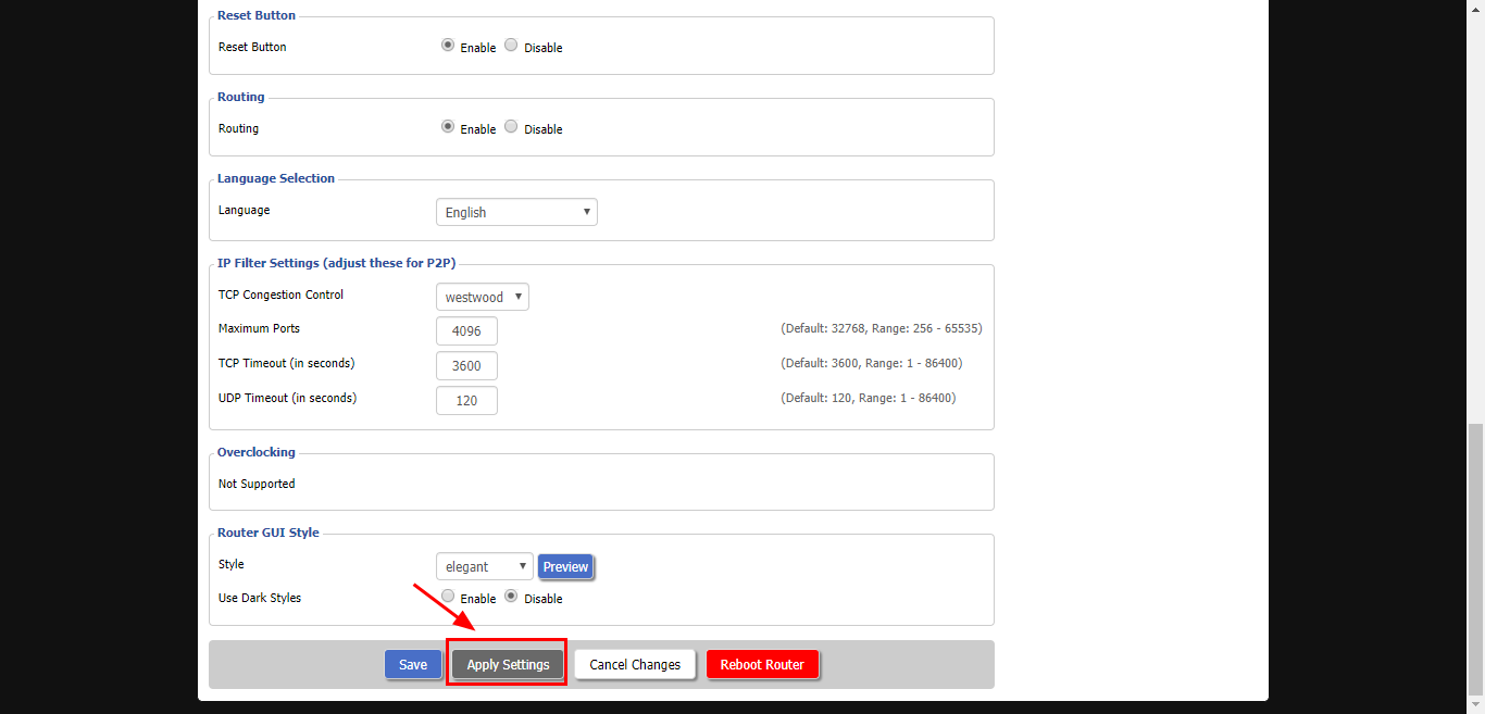 21. 그리고 맨 아래에 [Apply Settings] 를 클릭해 주면 변경이 완료된다.