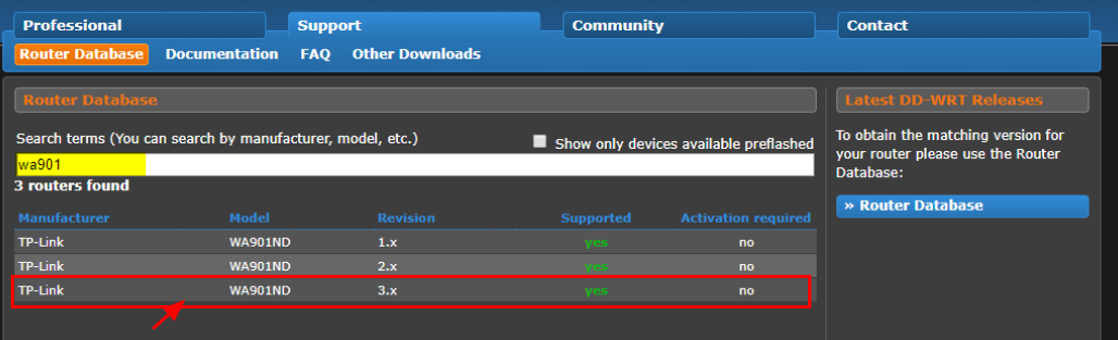 2. dd-wrt.com 사이에 접속해서 공유기 모델에 맞는 펌웨어를 찾아보자. 없는 모델도 있을 것이다.