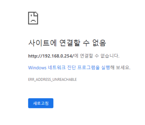 랜선으로 공유기와 연결시에는 접속이 불가능하였다.