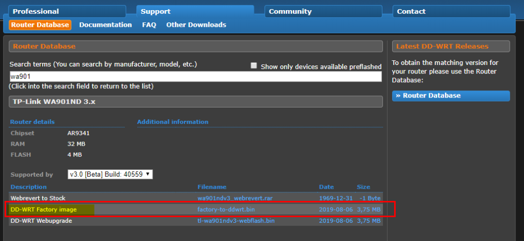 4. DD-WRT factory image 를 다운로드 하자. 아마도 기본 제조사 펌웨어 -> dd-wrt 펌웨어로 변경하는 모양이다.