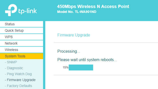 5. 일단 TL-WA901ND 공유기의 관리자 화면으로 접속하자. 랜선을 꼽고 바로 연결하였다.