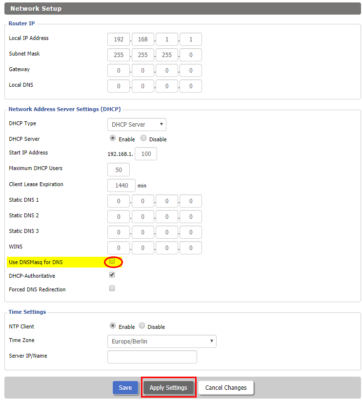 5. 하단쪽에 Use DNSMasq for DNS 부분에 기본 체크가 되어 있는데, 해제를 하자.