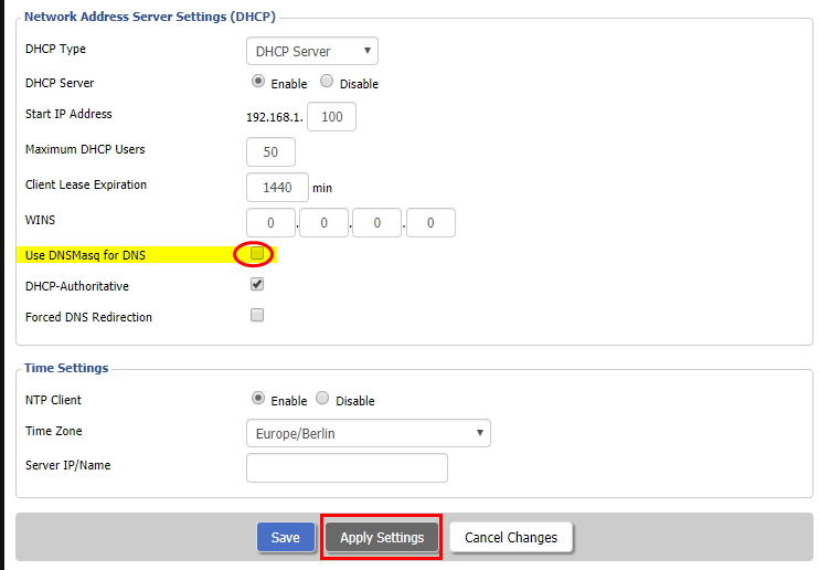 4. 아래쪽에 보면 Use DNSMasq for DNS 는 체크해제를 해 주자. 묻지도 따지고 말고..ㅎㅎ
