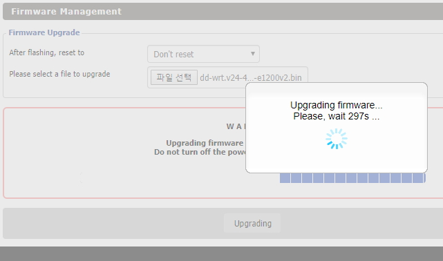 9. dd-wrt 펌웨어 업데이트가 시작된다.