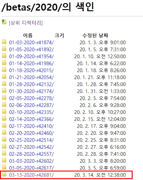 3. 최신 03-13-2020-r42681 폴더를 클릭. 거의 매주 버전들이 업데이트 되어 올라오는 모양이다.