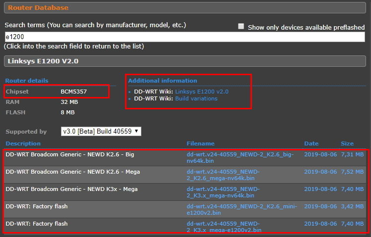 물론 베타버전이다. 홈페이지 데이터베이스를 보면 LINKSYS E1200 V2.0 모델로 칩셋은 BCM5357 사용중이다.