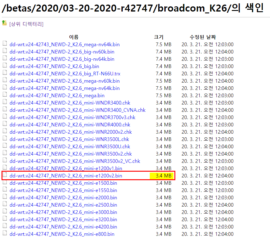 1. LINKSYS E1200의 경우는 DD-WRT 펌웨어가 2개 종류가 있다. MINI 버전과 MEGA 버전으로 있다.