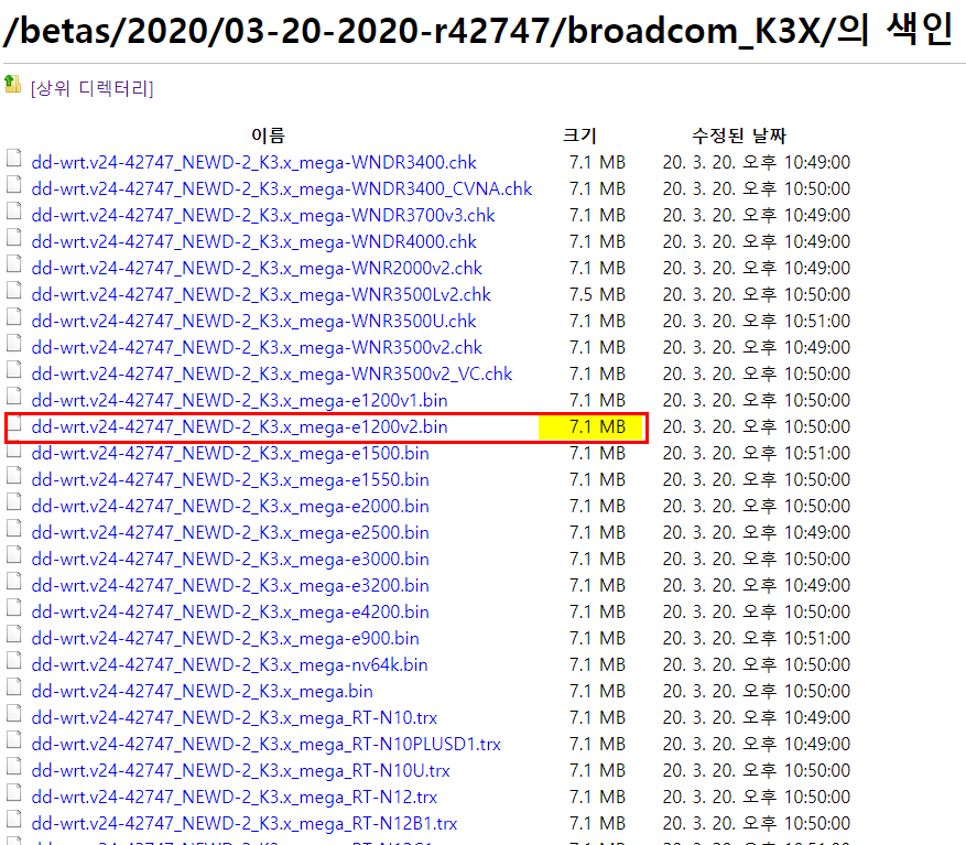 E1200 모델의 경우 이미 펌웨어를 MINI 버전으로 올린 경우는 MINI 버전으로 업데이트를 하면 크게 문제가 없을 듯하며, MEGA 버전으로 업데이트시는 조금 오류가 나오니 MINI 버전을 사용히는 것이 좋겠다.