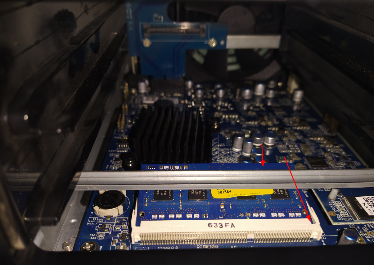 그런데 위에 철판 프레임이 하나 가로 막고 있는데... 아주 번거럽지만 겨우 메모리를 교체했다는 후문..