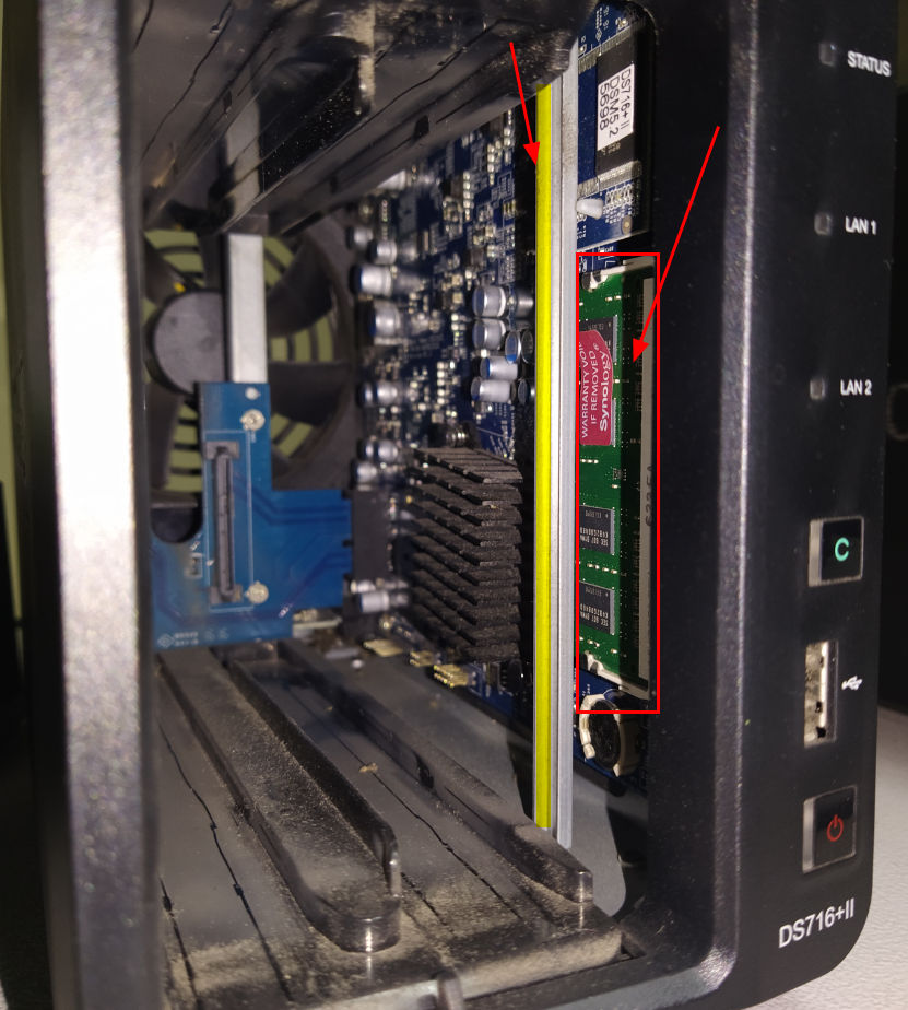 시놀로지 DS716+II 메모리 교체는 프레임 때문에 메모리 빼기가 좀 어려웠을 뿐 나머지는 쉬웠다. 케이스를 좀 더 뜯으면 쉬웠을지도 모르겠지만 하드디스크만 빼고 교체하기에는 예상보다 시간이 좀 걸렸다. 메모리 빼는데만 5분 정도...