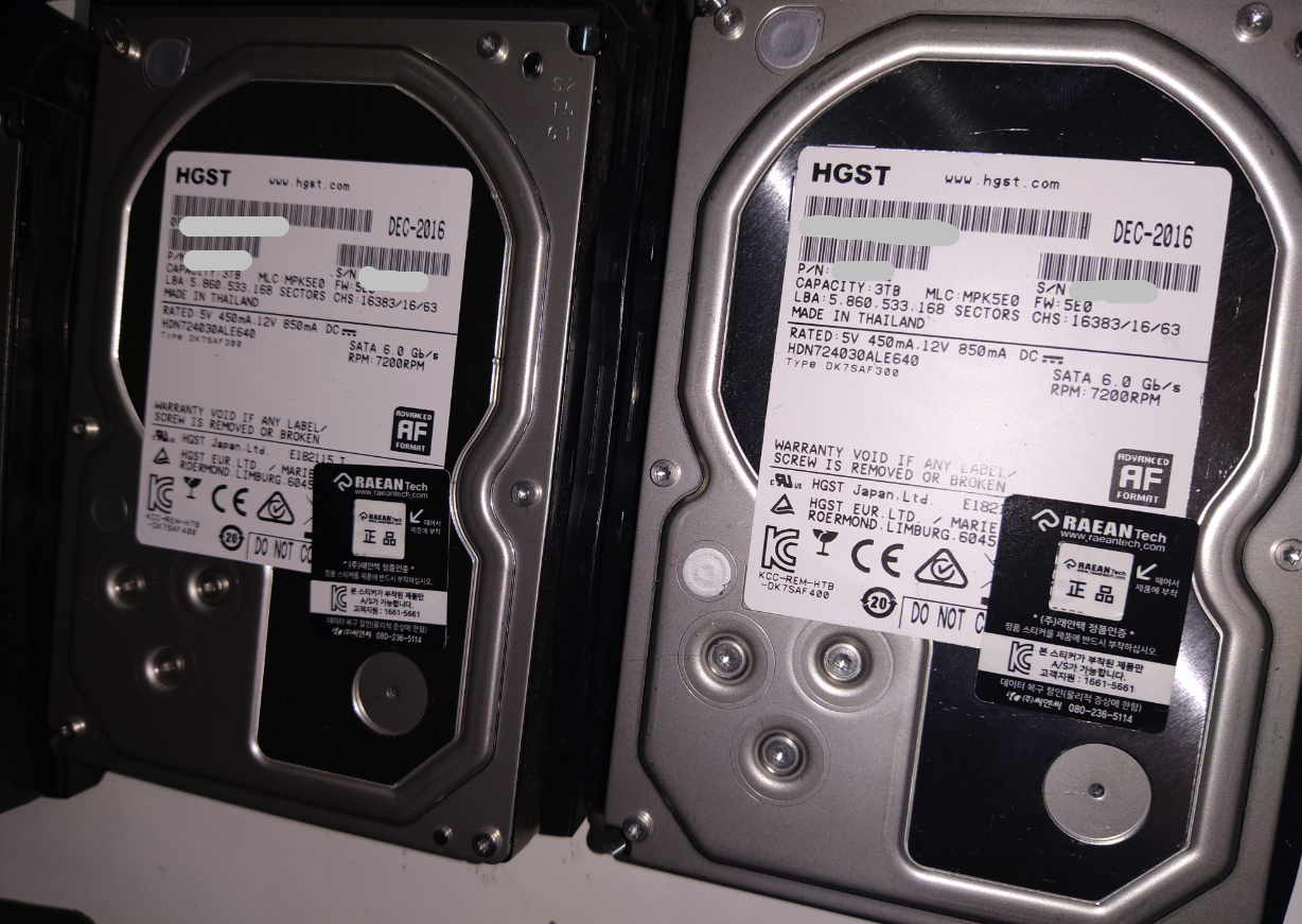 3. 하드디스크를 순서대로 빼고 메모하자. 4개이기 떄문에 순서가 잘못되면 큰일 날수도 있다.