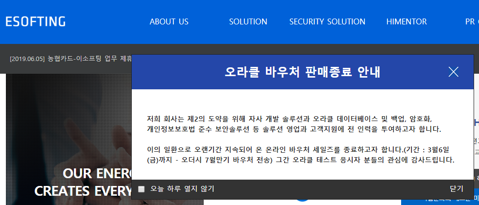 이의 일환으로 오랜기간 지속되어 온 온라인 바우처 세일즈를 종료하고자 합니다.(기간 : 3월6일(금)까지 - 오더시 7월만기 바우처 전송) 그간 오라클 테스트 응시자 분들의 관심에 감사드립니다.