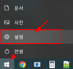 1. 시작 -> 설정을 클릭