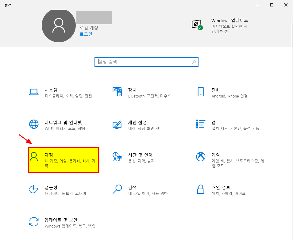 2. 계정을 클릭한다.