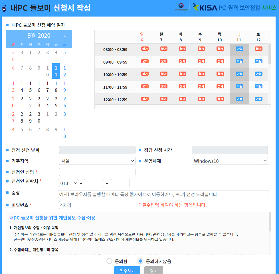 기업용 대상은 아니니, 일반적인 집에서 또는 개인PC에 대해서만 보안점검을 신청할 수 있다.
