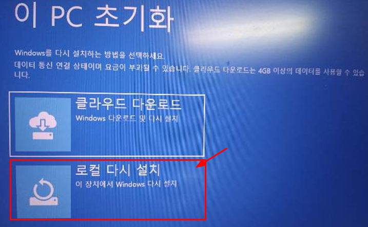 [로컬 다시 설치 : 이 장치에서 Windows 다시 설치]