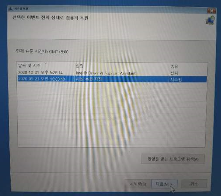 6. [고급 옵션] -> [시스템 복원] -> 최근에 복원 가능 시점이 존재하여 게임끝~ 으로 생각을 했으나