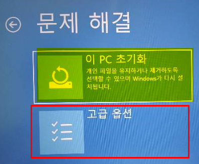 [고급 옵션]을 선택하면 옵션 선택 화면으로 들어간다.