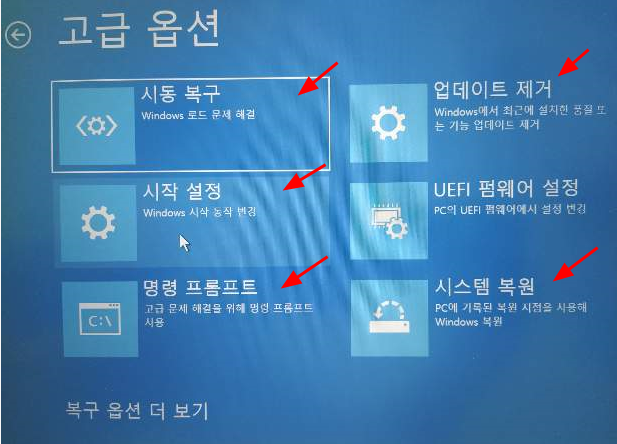 1. [고급 옵션] -> [명령 프롬프트] 명령어 #1