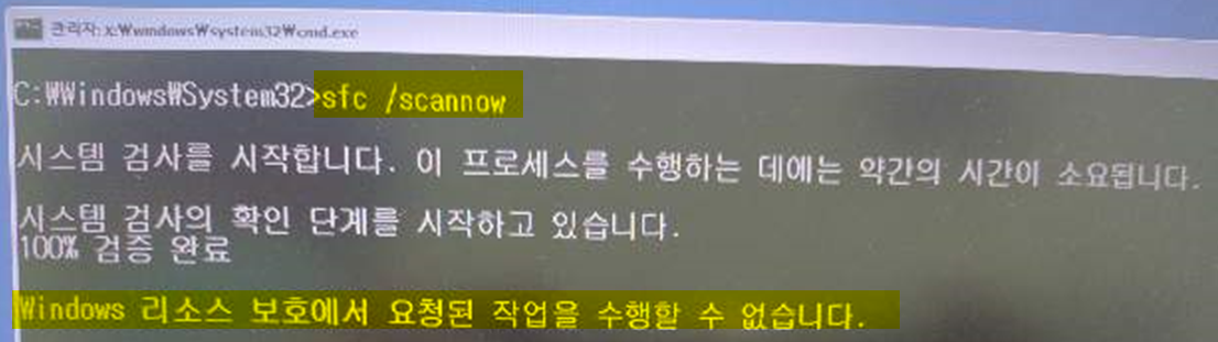 인터넷을 확인해 보니..해결 방법으로 보이는 건들이 있었다. 하지만 똘82닷컴이 해결한 방법은 pc를 초기화 하는 방법이었다. 다른 명령어 및 메뉴들은 정상적으로 먹히지 않았다.