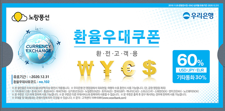 2. 우리은행 환율우대쿠폰 60% : 2020년 12월 31일까지
