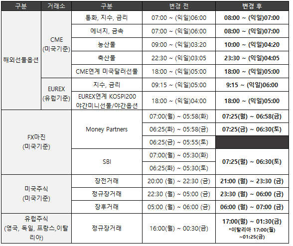 2. 서머타임 해지로 인한 장운영 시간 변경 (한국시간 기준)
