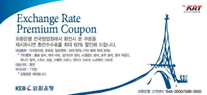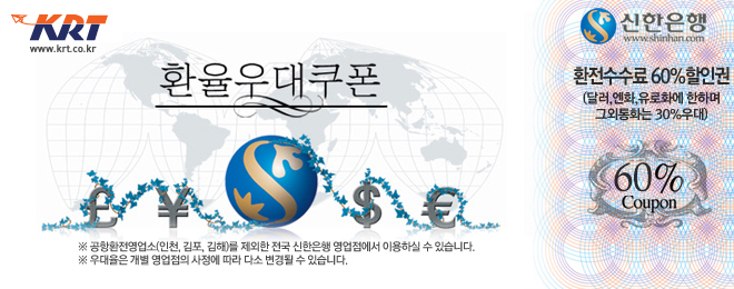 1) 미국달러화, 유로화, 일본엔화 최대 60% 할인(기타 통화 최대 30%)