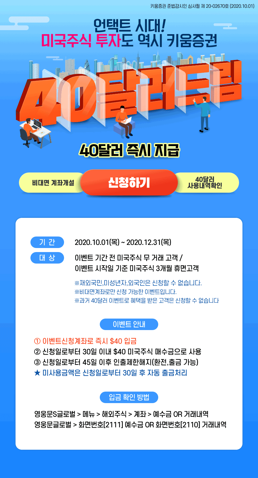 1) 이벤트 신청계좌로 즉시 $40 입금