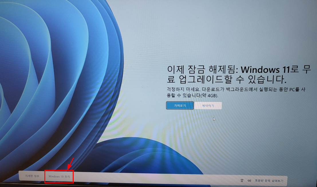다만 1회만으로 끝나는 것이 아니고, 다음번 언제가 또 윈도우11로 업그레이드 하라는 화면이 또 나올 것이다.