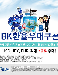달러환율우대1 2019년 환율우대쿠폰 (~12월 31일까지) - 하나투어 제공 2019년 12월 31일까지 사용가능한 환율우대쿠폰에 대해서 알아보자.하나투어 홈페이지(http://www.hanatour.com/asp/contents/eventBoard/cp-00001.asp?hanacode=am_etc)에서 제공하고 있으며 70% ~ 90% 환율 우대 쿠폰이 있다. 신한은행(써니뱅크)가 어플을 이용해서 최대 90% 환율우대를 제공하기에 현재로써는 최대이다.보통 해외여행은 달러(USD) 있으면 해외현지에서 환전하는 것이 가장 좋을 것이다. (공항 제외)대신 우리는 원화를 가지고 있으니, 달러로 바꾸기 위해서는 환율우대쿠폰을 사용하는 것이 조금은 이득이 될 것이다. 1. IBK 기업은행 : 70% 환율우대쿠폰USD, JPY, EUR 최대 70% 우대 2. KEB하나은행 : 70% 환율.. 2019. 9. 5. 이전 1 다음